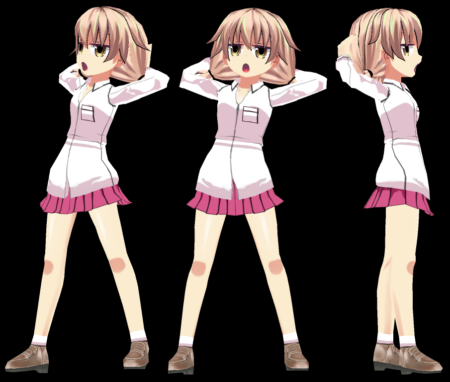 「GHost9Solid」の数納歩、 今まで松下・北大路に利用していた体は、等身が高く、細すぎて 2,5Dの世界に合わないため、5頭身に作り直しをしました。 ※実際に2,5Dの世界で動かしてみました。 参考動画「3Dモデル&カメラ動作テスト2」 (http://www.nicovideo.jp/watch/sm30624892) この数納歩をベースに、五十鈴川・北大路・小鳥遊等を作成します。 お楽しみに!! |